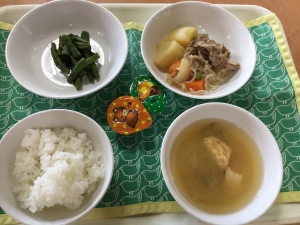 ポークカレー キャベツのサラダ (手作りドレッシング) ストロベリーヨーグルト エネルギー 537 Kcal、 たんぱく質 12.7 g、 脂質 17.1g、 塩分 1.8g