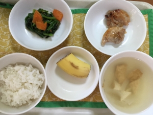ロールパン もみの木ハンバーグ クリームシチュー ゼリー エネルギー 480 Kcal、 たんぱく質 14.9 g、 脂質 17.5g、 塩分 2.0g