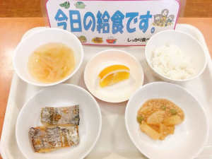 今日はおろしりんごの入ったりんごゼリーがデザートでした。 さっぱりとした味とつるんとなめらかな感触がとってもおいしいりんごゼリーです。 子どもたちにも大人気なので、 ぜひ、ご家庭でもりんごをすって、ジュースとゼラチンで試してみてください^^