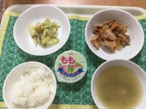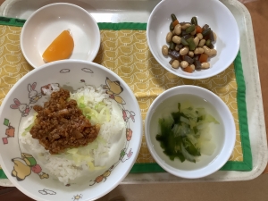 五目煮豆 コンソメスープ フルーツ
