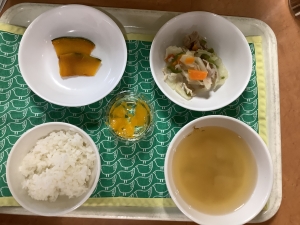 ごはん 白身魚のごましょうゆ焼 さつまいものレモン煮 すまし汁 フルーツ