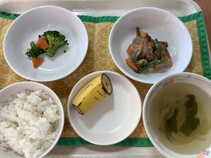 ごはん 鶏のみそ焼 ブロッコリーの和え物 すまし汁 フルーツ