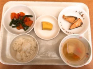 給食は年長組さんが作ってくれました!いつもと違うメニューで、