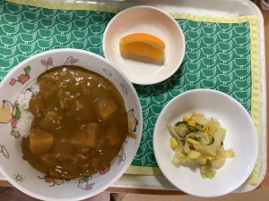 キャベツのサラダ (手作りドレッシング) フルーツ