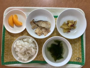 高野豆腐の煮物 みそ汁 手作りパインゼリー