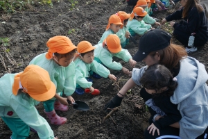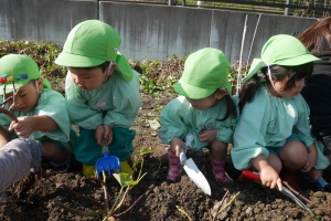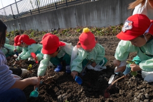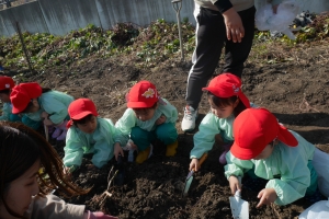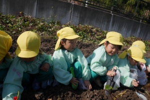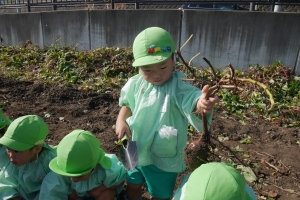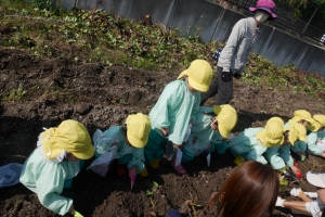 「どんなおいもがとれるかなー♪」と楽しみにしていた子どもたちです😌