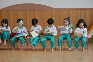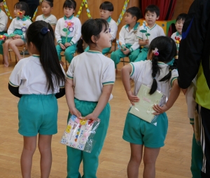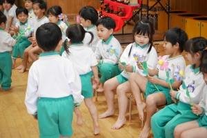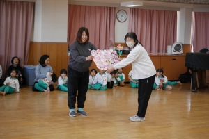 午後からおゆうぎ室にあつまり、お別れ会をしました。