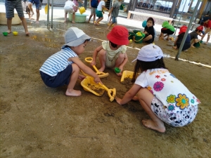 大胆に遊ぶ子や、少し泥の感触が苦手な子は
