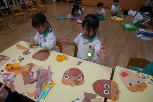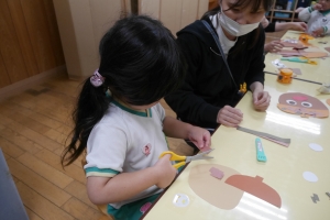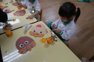 「どんな大きさにしようかな?」と考えて、どんぐり帽子に貼る画用紙をちょきちょき切っていきます。