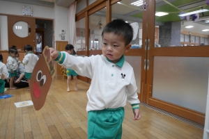 たくさんのどんぐりを転がしたり、身体を使って表現したりしてきた子どもたちです!