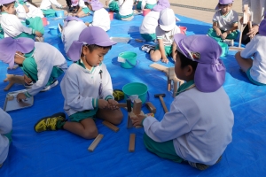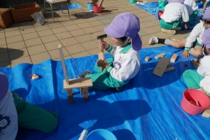 今度は、かなづちを使って、それぞれのパーツを付けていきます。