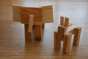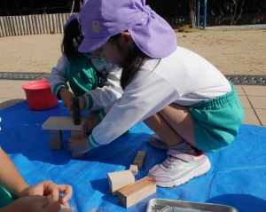 年長組は、木の積み木を使って動物を作って遊んできました。