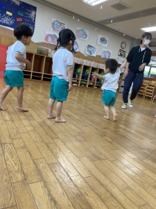 今、ぱんだ組さんではてんとう虫の身ぶり表現をしています。