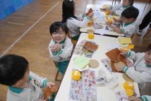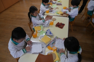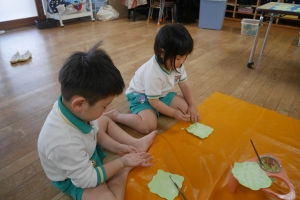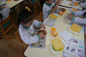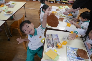 年少組では、ハンバーガーを作るために、毎日いろいろな食材を作っています!