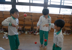 難しいけれど、毎日練習して上手になってくるけん玉。