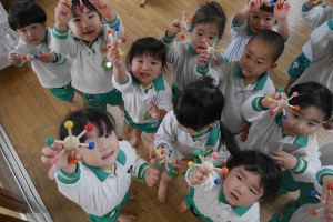 ぱんだ組は、“かんたん木ごままわし”をもらいました。