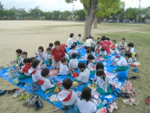 遊んでお腹が空いた子どもたちは、お家の人が作ってくれたお弁当!!