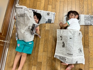 新聞をお布団のようにして寝てみたり😴