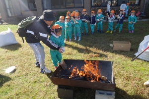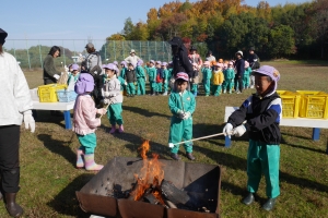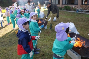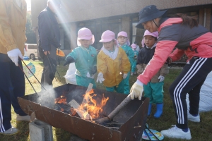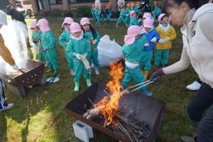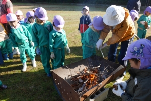 短大の先生や職員の方が準備をしていてくれ、年長さんが火をつけていきました🔥