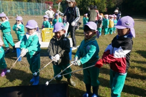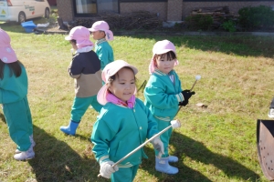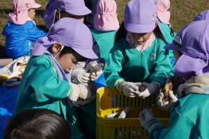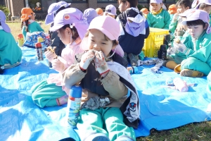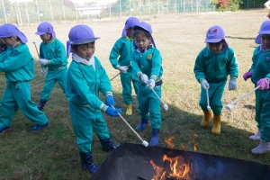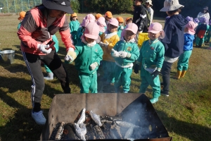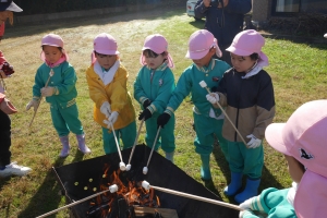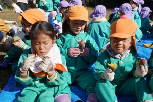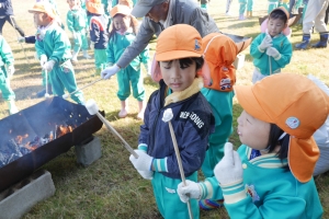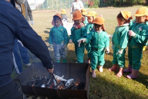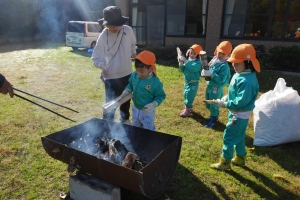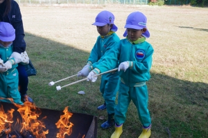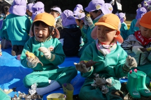 良い天気に恵まれ、年長組・年中組は短大へ向かい焼き芋大会を行いました💡