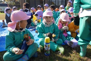 焼き芋の準備をして、森でたんさん遊んで、おいもを食べて、大満足して園に帰りました!