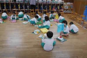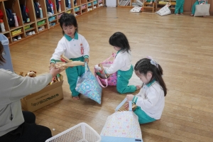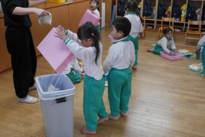 年少組さんは、持ち帰りの荷物をまとめたり、お道具箱の中身を整理してきれいにしていました💡