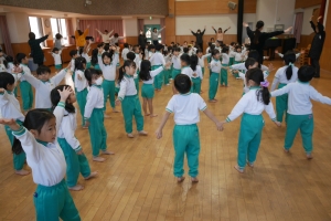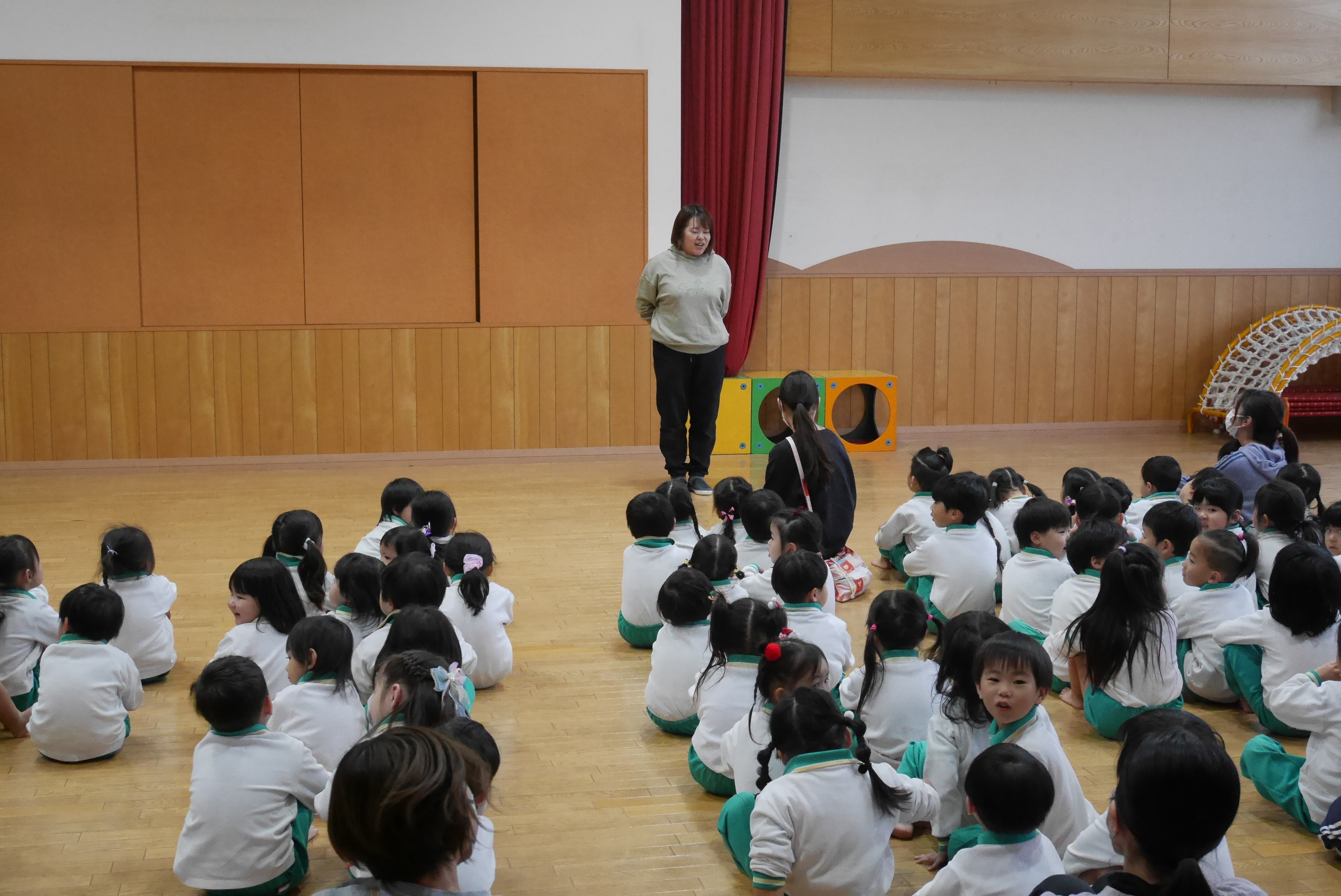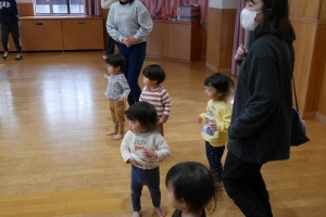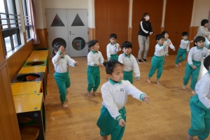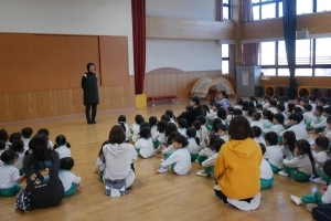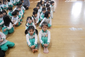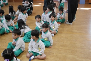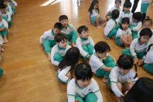 お遊戯室に集まり、始業式を行いました。