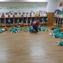 大阪千代田短期大学をはじめ、千代田学園内の各校と連携し、保育内容を充実させるため研究を進めています。合宿保育、預かり保育、夏まつり、運動会、生活発表会などの行事では、学生ボランティアが大活躍してくれます。子ども達は、実習生とのふれ合いも大好きです。